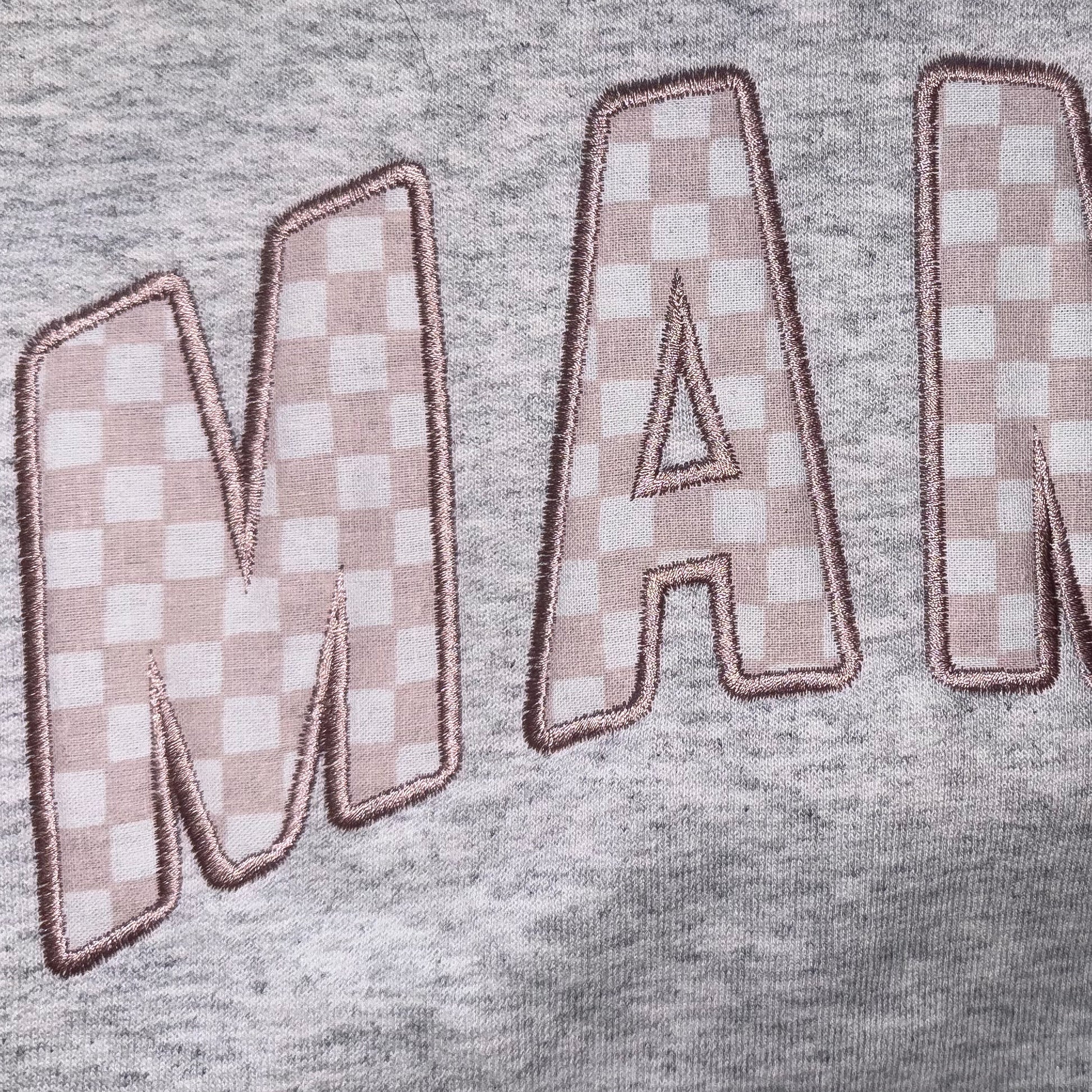 "Add a personal touch to your wardrobe with our Embroidered Mama top. This customizable piece features a beautiful appliqué design and proudly celebrates the journey of motherhood. Show off your love and pride for being a mama with this stylish and meaningful addition to your wardrobe."