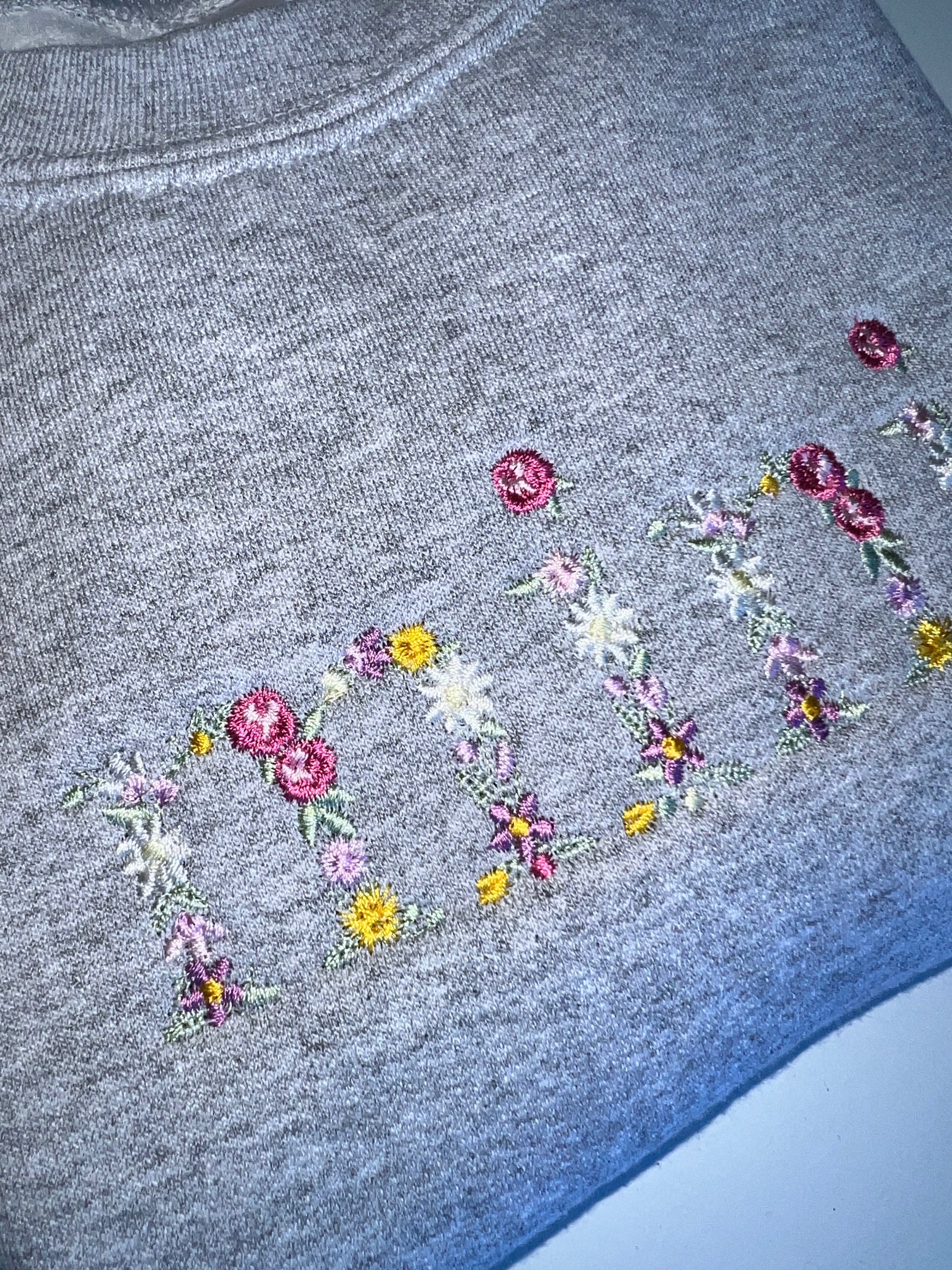 Sheena Jordan      This custom sweatshirt I had made for my daughter is so beautiful! I love the details of each flower and the colors!